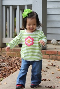 Lovey wants to run so badly. She’s been trying to figure it out for weeks. At random moments throughout the day, she’ll reach for my hand and say,